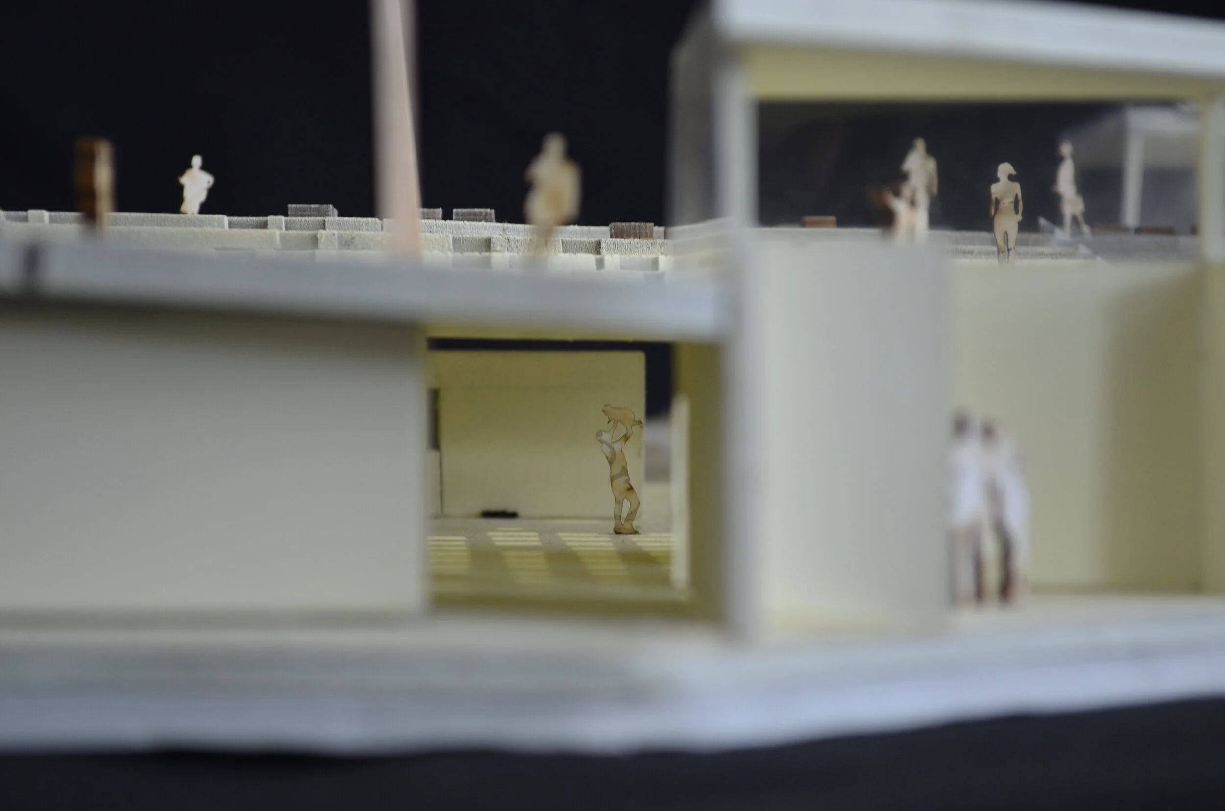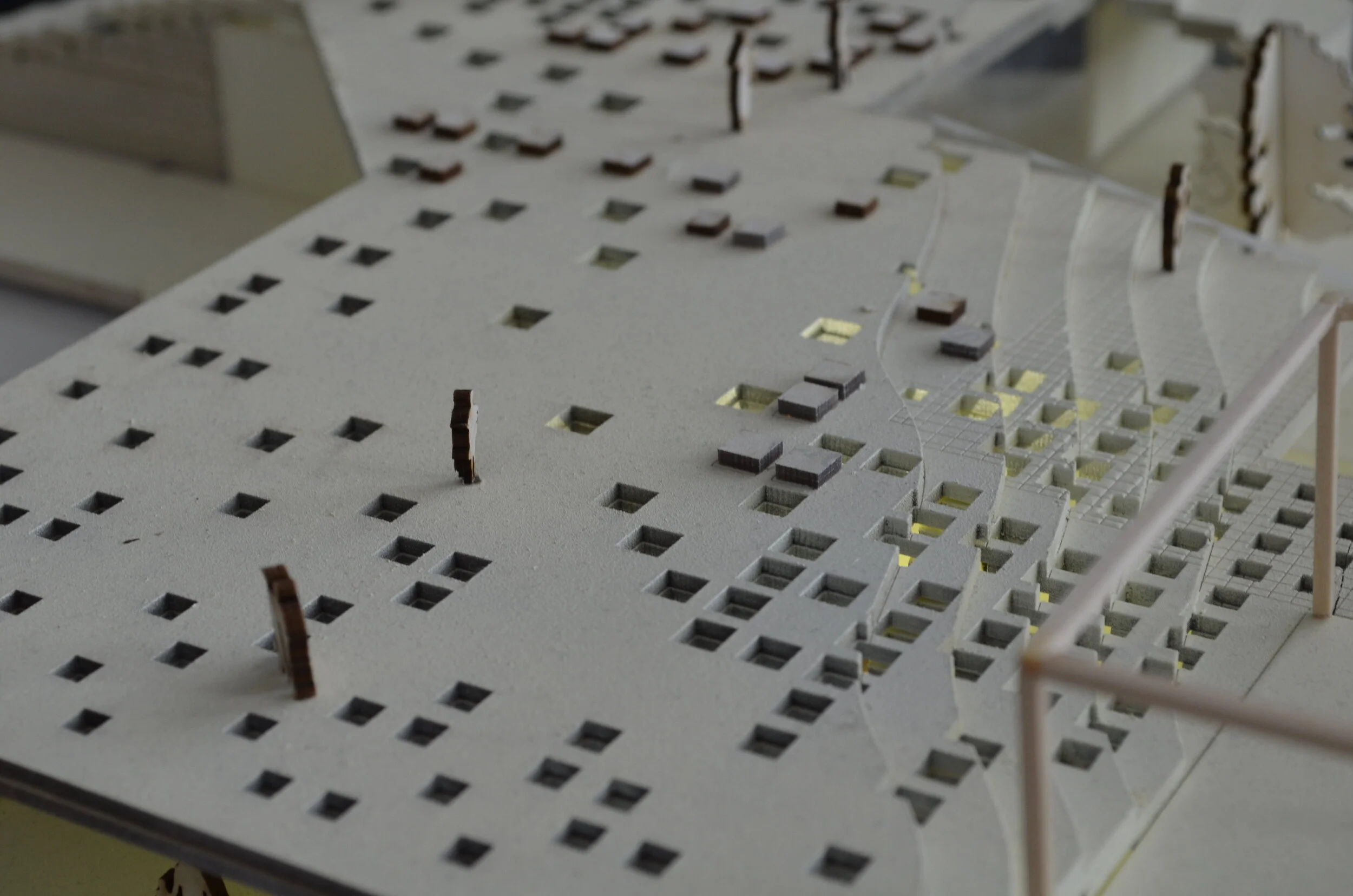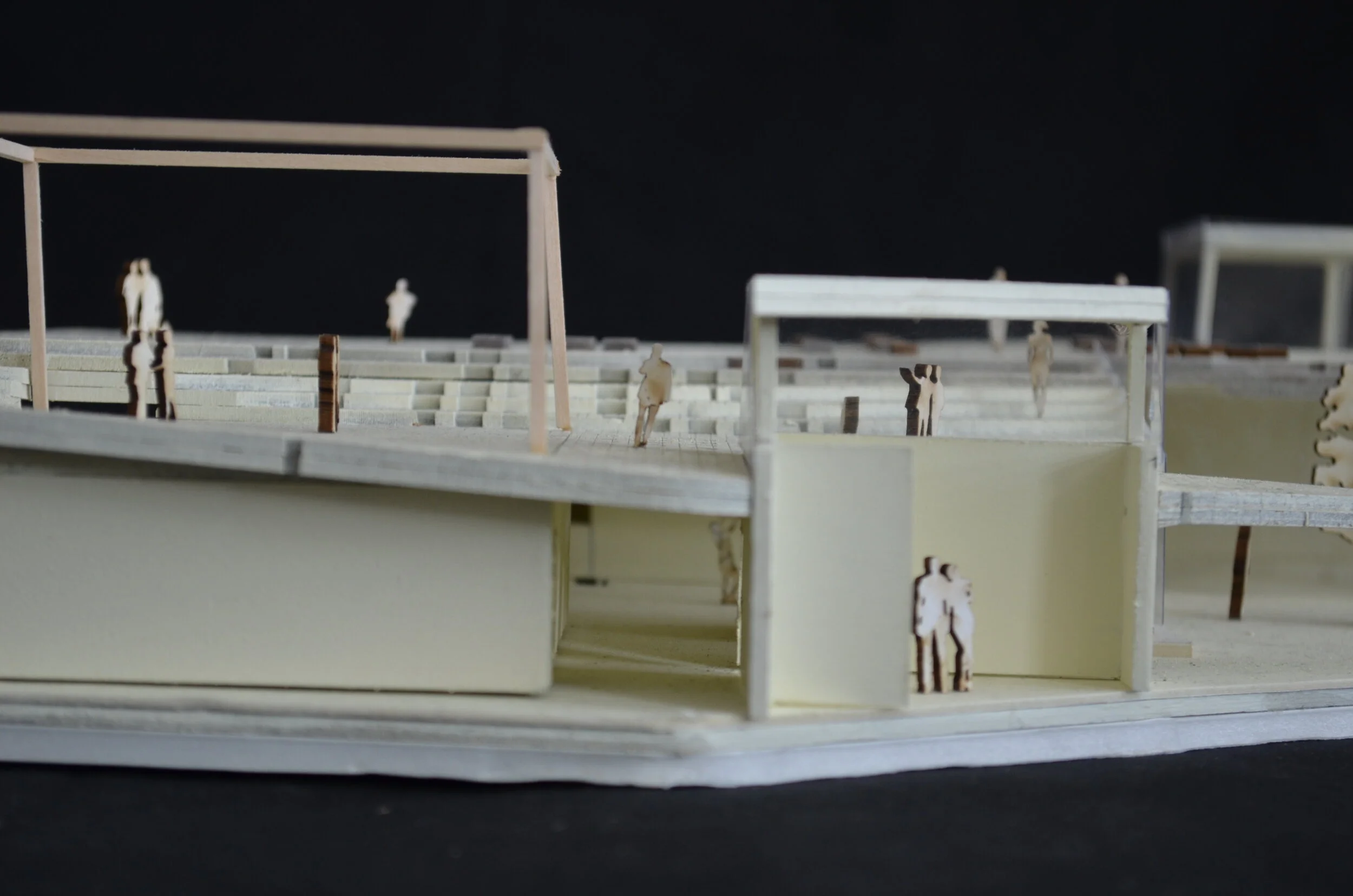 At CCNY, the performing arts disciplines are scattered throughout the campus with no centralized home. Aaron Davis Hall is both a public and private theater for the school and the community, however the theater department holds most of its classes in the building. Whereas the Music and Film departments do not utilize the building at all. This project proposed to expand the performing arts center through a horizontal intervention in the field between Aaron Davis Hall and The Spitzer School of Architecture. This field is underutilized due to its existing conditions and the design opens this field up while providing a new central building for the performing arts disciplines.